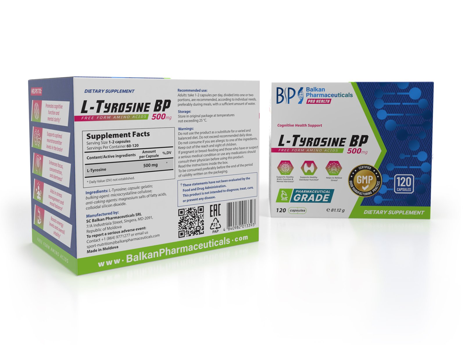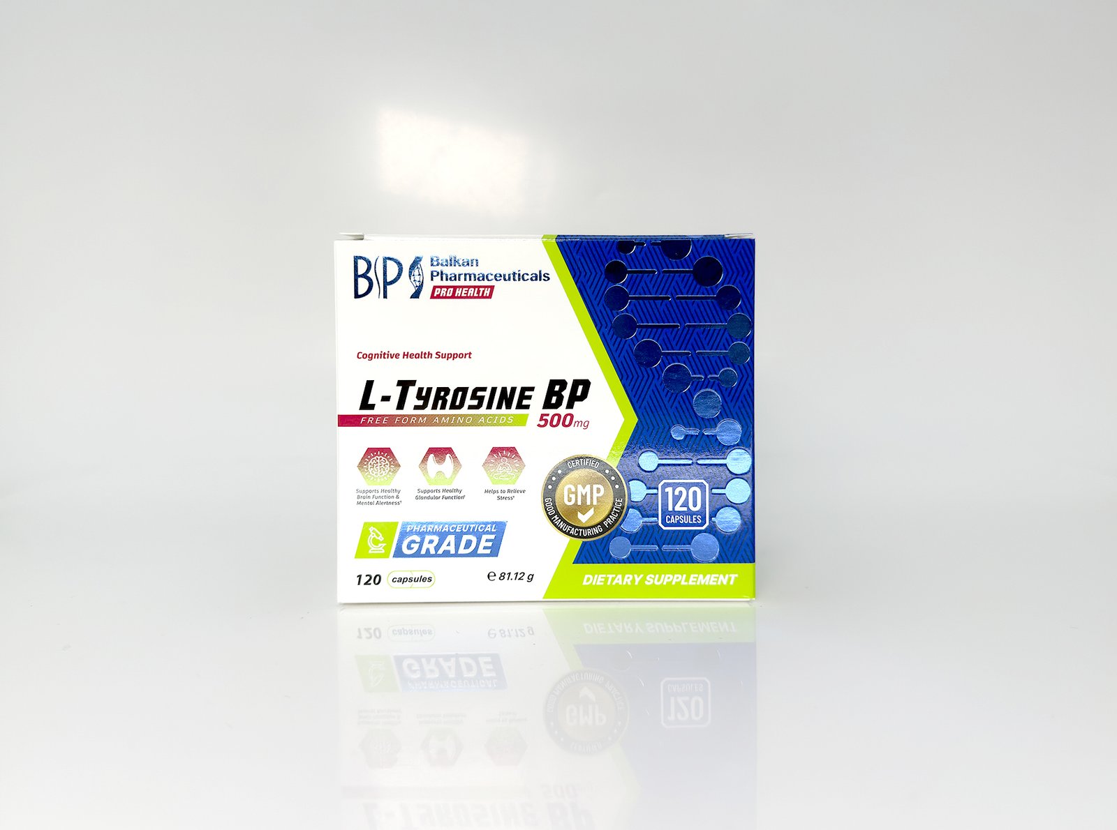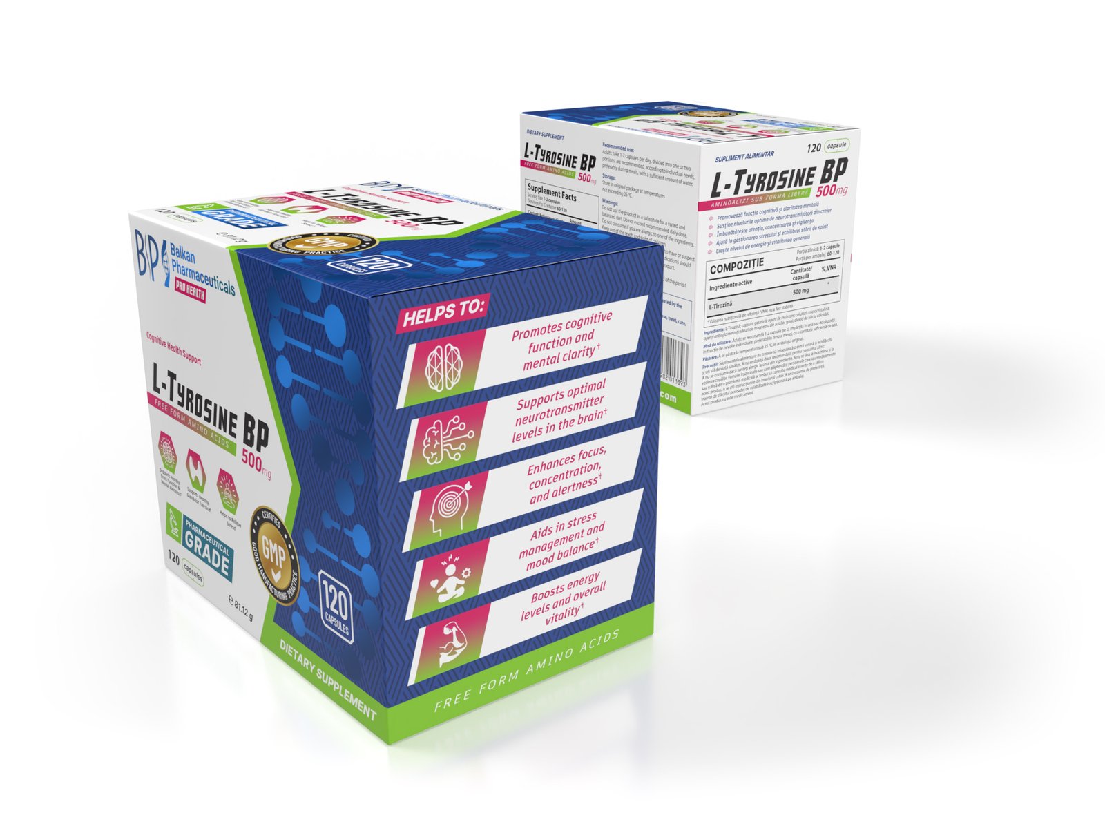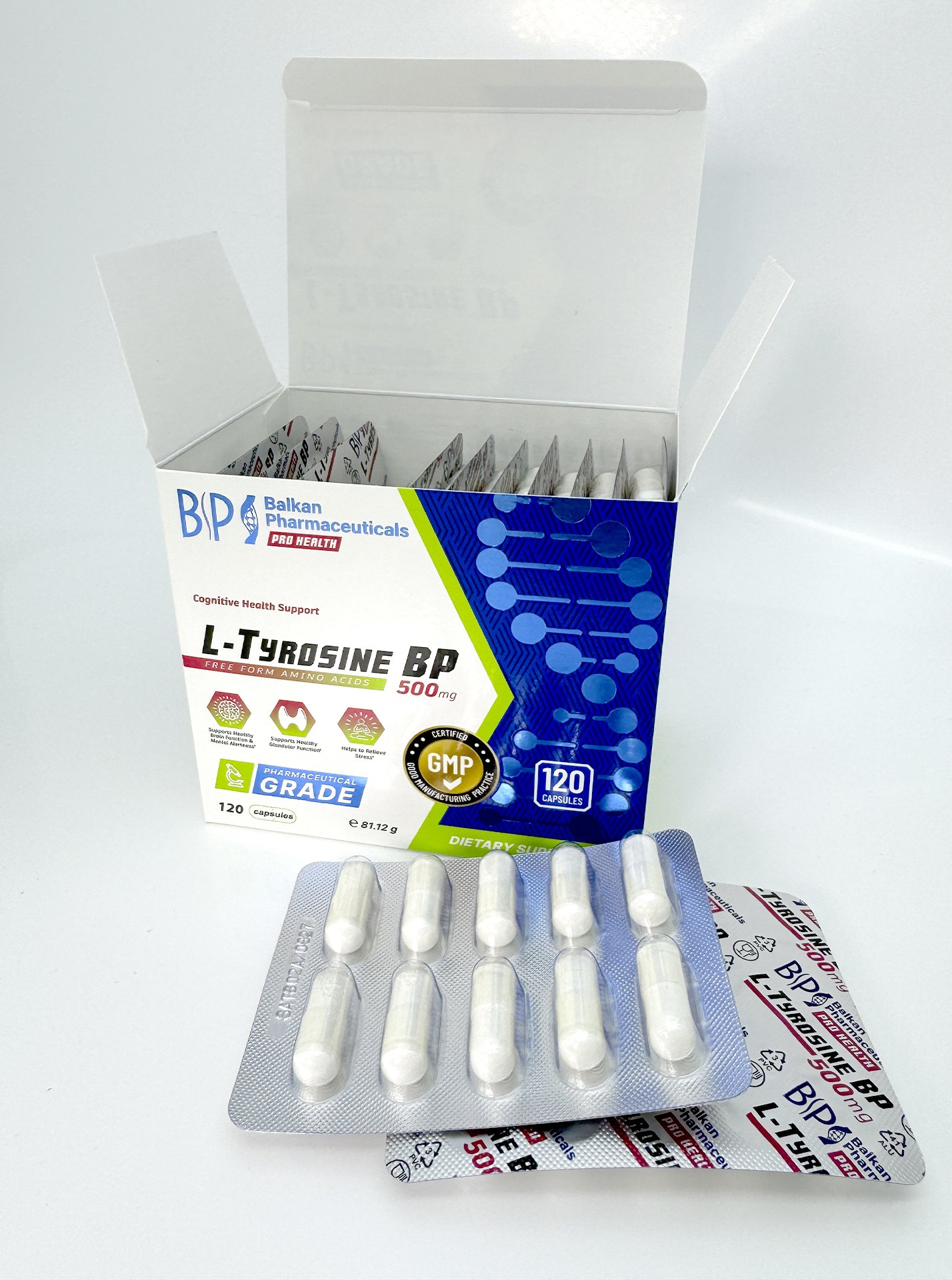 L-Tyrosine BP is a dietary supplement in capsule form, containing 500 mg of L-tyrosine per capsule. This amino acid plays an important role in the production of neurotransmitters, which are chemical substances that support brain functions and positively affect mood, memory, and concentration.