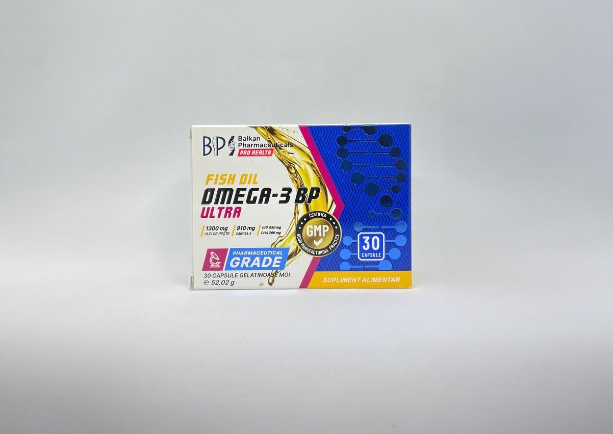 High-potency, highly absorbable ESSENTIAL Omega-3 BP fish oil — 1300 mg per softgel with 650 mg EPA & 260 mg DHA — to support heart health, bones & joints, and the immune & nervous systems. Odorless, easy-to-swallow capsules. 30 softgels = 1-month supply.