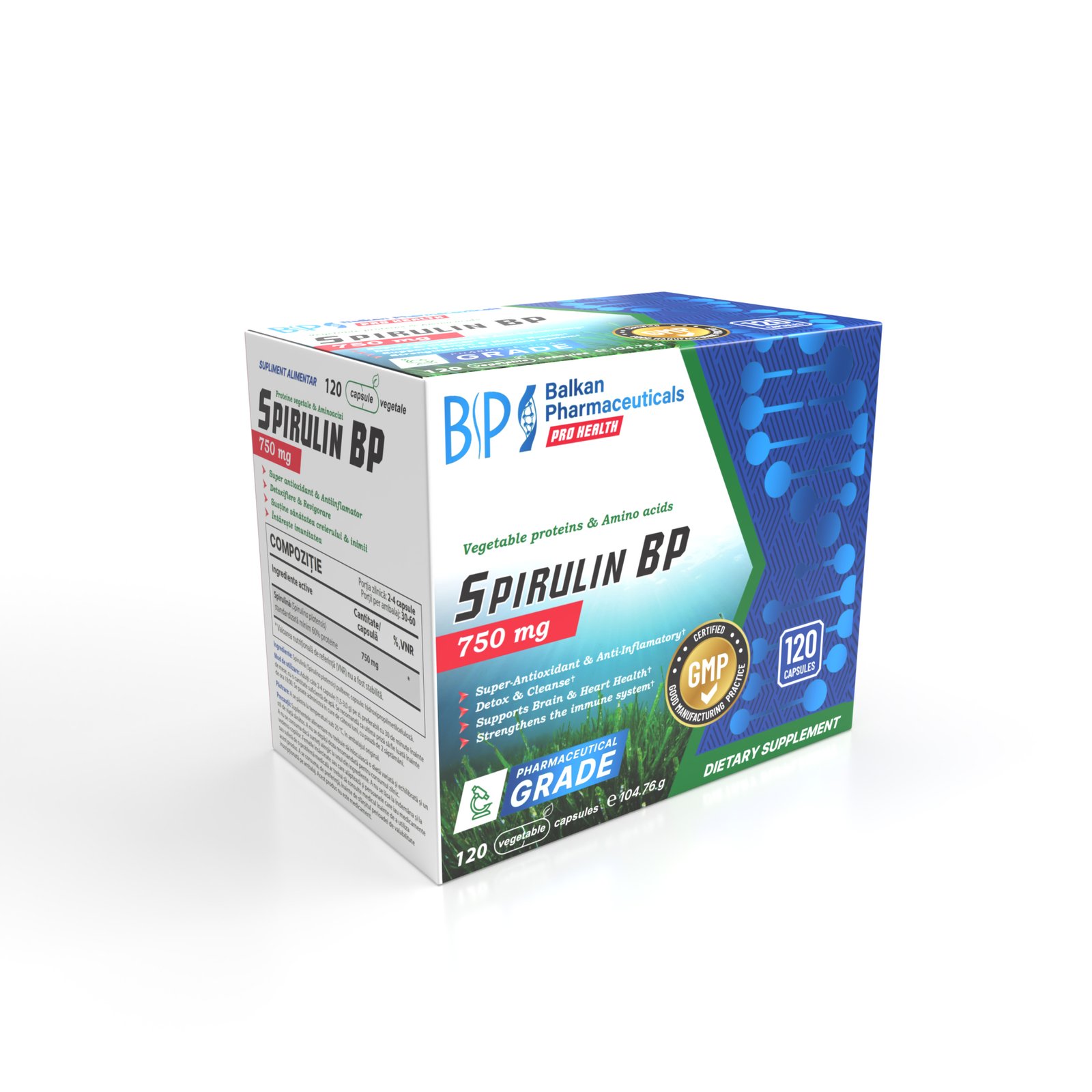 Discover the extraordinary benefits of Spirulin BP, the innovative dietary supplement packed with 120 vegetarian capsules.